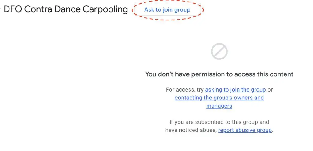 If you don’t have a Gmail account or have trouble finding/joining the group, just email carpool@danceflurry.org and we’ll add you directly.