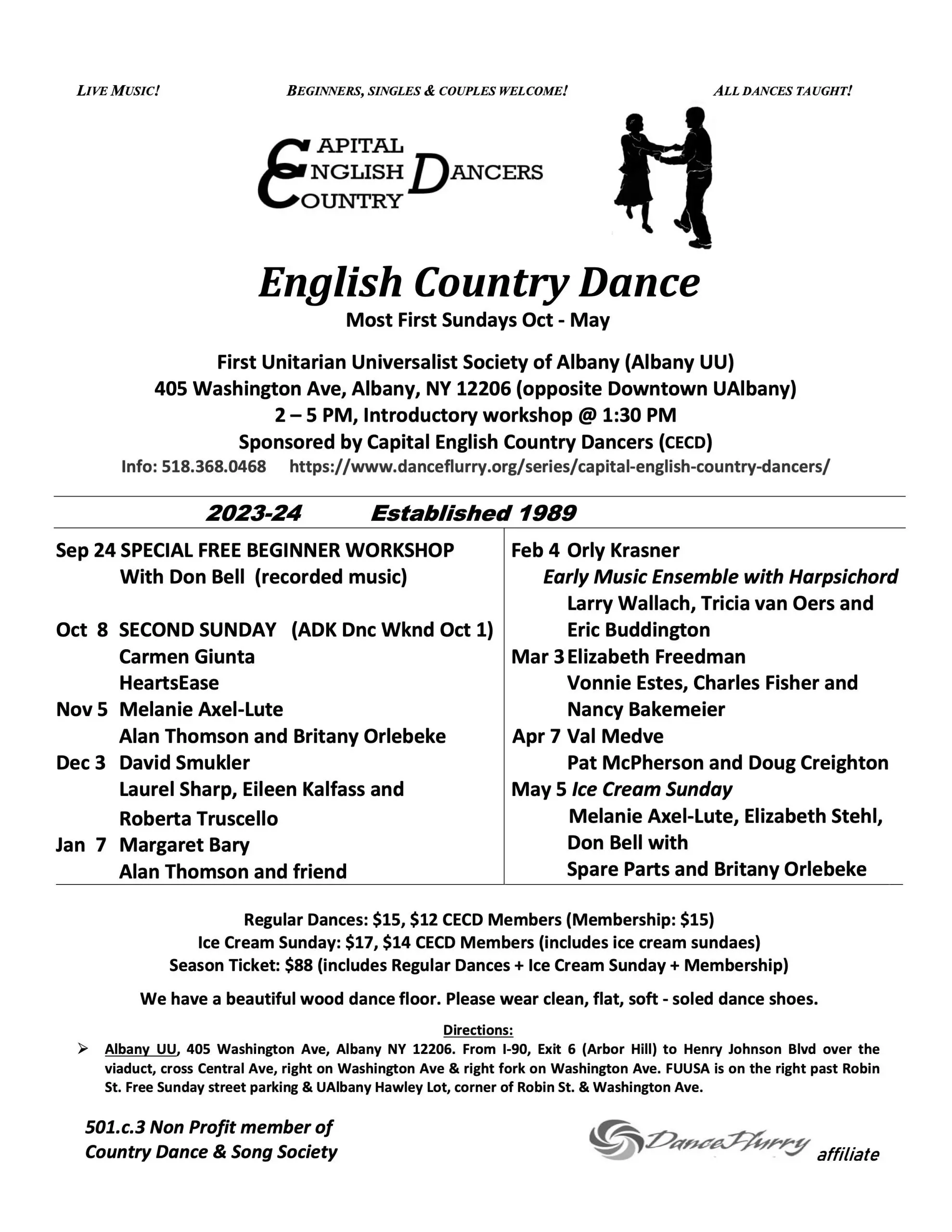 Capital English Country Dancers is an Affiliate of the DanceFlurry Organization and a member of Country Dance and Song Society