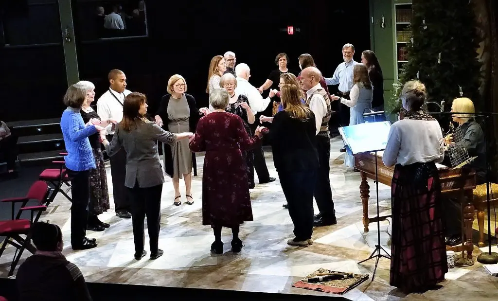 In December of 2018, the Capital English Country Dancers demonstrated dances from the time of Jane Austen, for the Capital Repertory Theater’s holiday performance of the play Miss Bennet: Christmas at Pemberley.