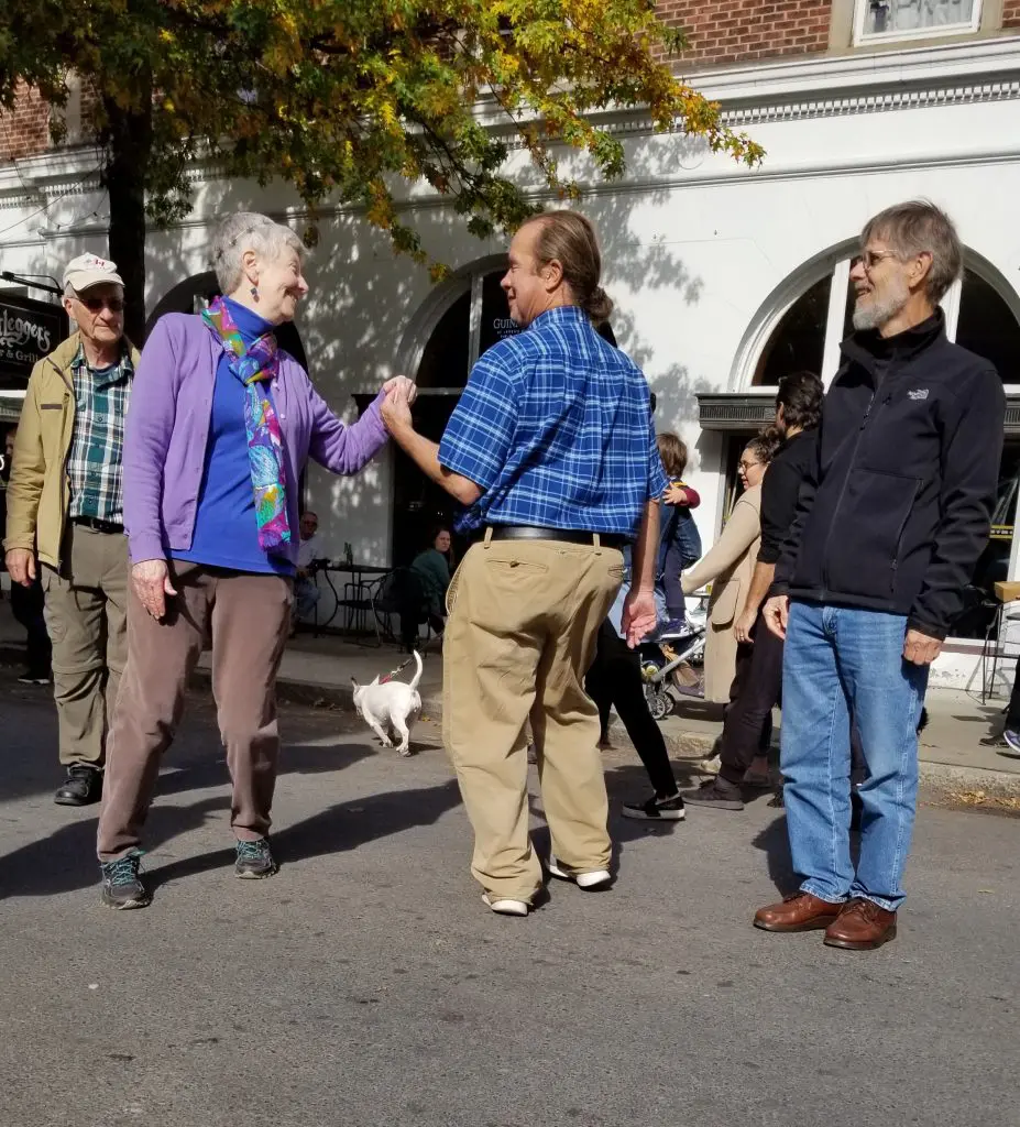 On October 2, 2022 the DFO sponsored a Mini Contra at the Upper Madison Street Fair in Albany. Four sets of veteran dancers and some new dancers enjoyed two dances called by Melanie Axel-Lute, with lively tunes by George Wilson, Mark Badgon, Vonnie Estes, and David Barnert. Lots of attendees stopped by to chat, pick up flyers, and share in our excitement around the resumption of our Albany events.