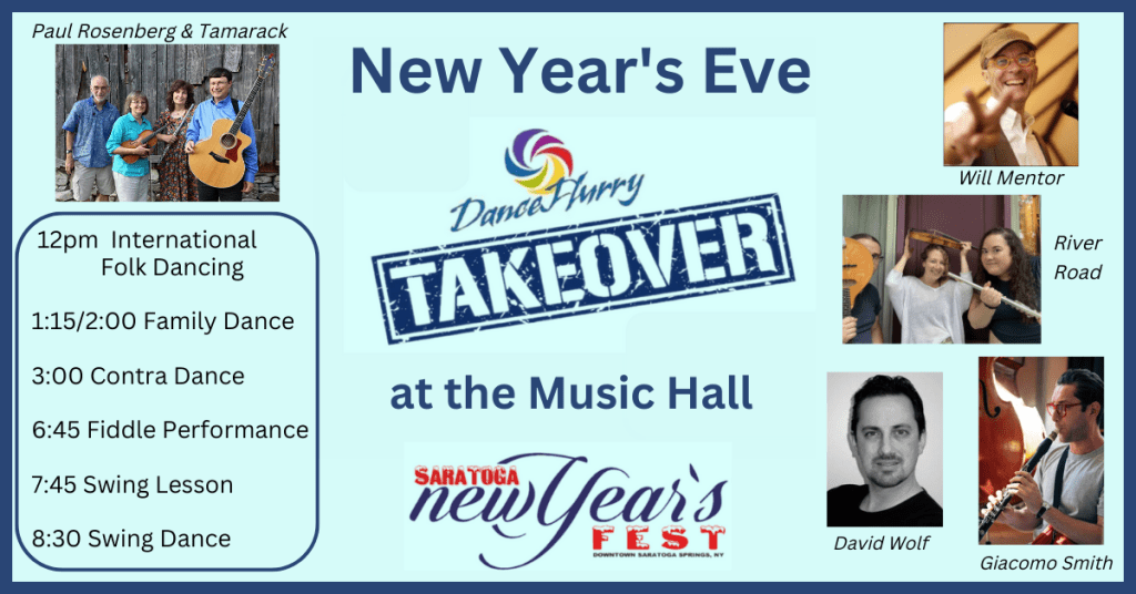 On Dec. 31, 2022, DFO sponsored a full day/night of dancing in partnership with Saratoga New Years Fest, bringing seasoned dancers and new participants together for a joyous New Years celebration. Read about it at https://www.danceflurry.org/event/new-years-fest/ and find videos from the event here.